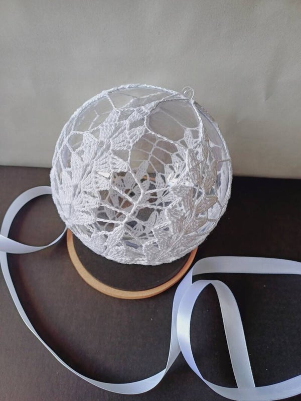 Ręcznie robiona bombka z koronkowym motywem liści